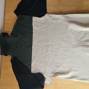 NWT Free People Softly Structured Colorblock Oversized Tunic Sweater in Olive Black and Ivory, Size S