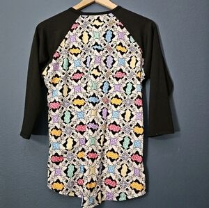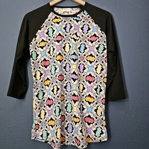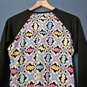 Excellent condition! Multi color raglan top from LuLaRoe. Cute Minnie Mouse pattern with contrasting sleeves. Women's size medium, see photos for bust and length measurements.