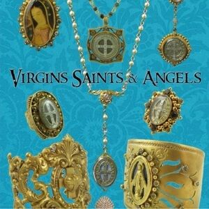 Virgins Saints & Angels 4-strand pearl ,gold chain necklace removable medallion