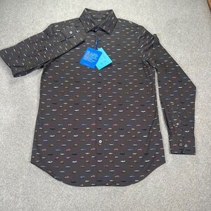 Bugatchi OoH Cotton Tech Men's Dress Shirt 8 Way Stretch Car Print Medium New