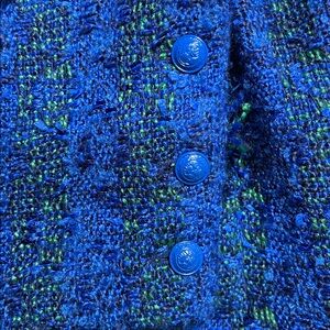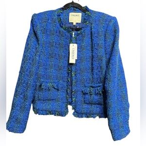 L'AGENCE Angelina Tweed Fringe open style Blazer in Cobalt Blue, Crested Buttons