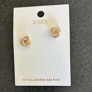 Chic gold knot earrings with sparkling crystals. Hypoallergenic posts. Ideal for any outfit.