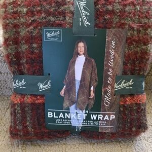 Soft Woolrich wrap with red and green plaid. Ideal for layering.
