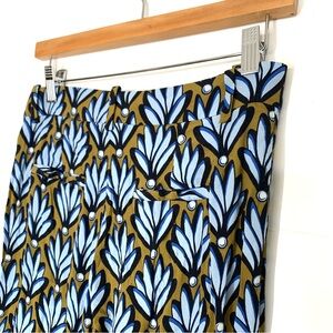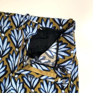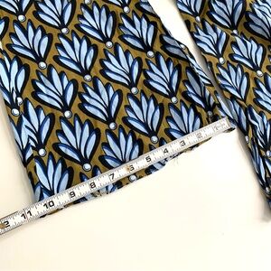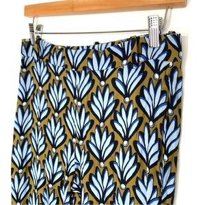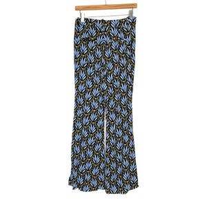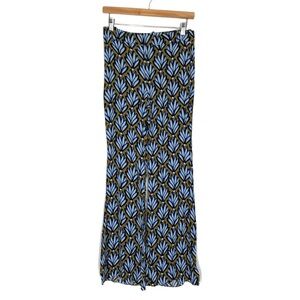 Zara Wide Leg Pants Blue Brown Leaf Print Size Small Lightweight Flowy