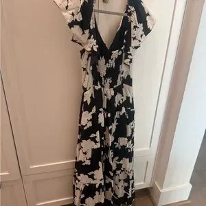 Rachel Zoe Black and Cream Floral Maxi Dress