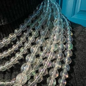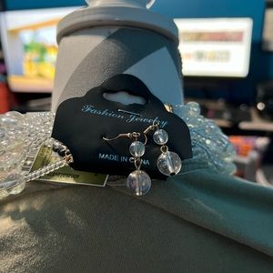 8 strand clear/iridescent necklace with matching earrings.