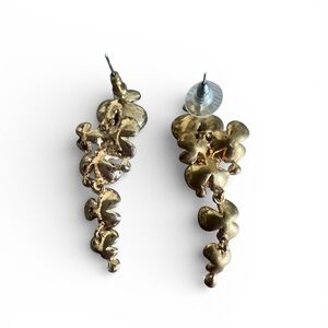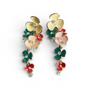 Elegant floral drop earrings featuring vibrant red, green, and cream petals accented with sparkling stones. Perfect for adding a touch of color to any outfit.