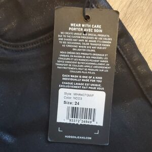Stylish black coated skinny jeans by Hudson. Perfect for a sleek look. size 24 fits like a size 2-4