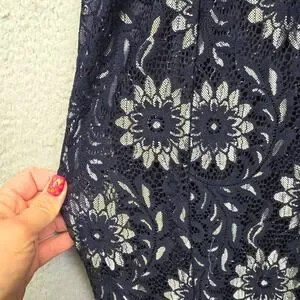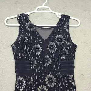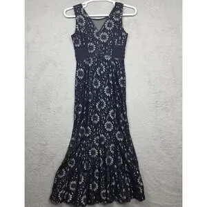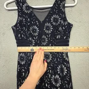 En Focus Studio Maxi Dress Womens 6 Blue Floral Lace Lined Mermaid Formal Prom