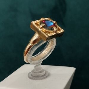 Vintage 70's Sarah Coventry Volcano Ring Open Square Purple Gold Tone