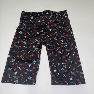 Maje shorts, designer Bermuda shorts, Parisian fashion, lipstick print, heart print shorts, Maje Heart and Kisses, printed biker shorts, SMCP, made in France, black summer shorts, Y2K inspired, playful shorts