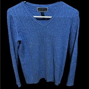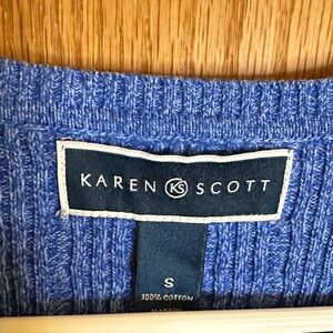Karen Scott Textured 100% Cotton Blue Cable Knit V-Neck Sweater