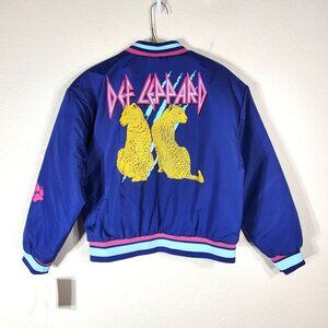 Def Leppard Youth Bomber Jacket Size 14/16 Navy Blue Polyester NWT