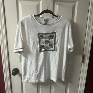 KORET Womens White Embroidered T-Shirt Top Size M Short Sleeve Crew Neck Accent