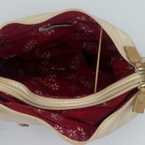 The Croft and Barrow navy and cream canvas shoulder bag is a stylish and practical accessory for women. This medium-sized rectangular bag features two zip closures, navy handles/straps, and silver hardware accents. The exterior is made of durable canvas material, while the lining is fabric. It also includes inner pockets for organization and is perfect for everyday use as a shoulder bag. This versatile bag by Croft & Barrow is a timeless piece that can add a chic touch to any outfit.