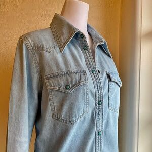 Banana Republic classic faded denim western shirt with turquoise snaps