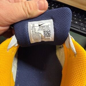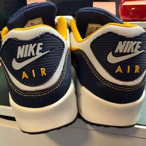 Nike Air Max with navy and gold accents. Sleek design with comfortable fit. Some slight wear but would easily be cleaned. Size 10.