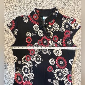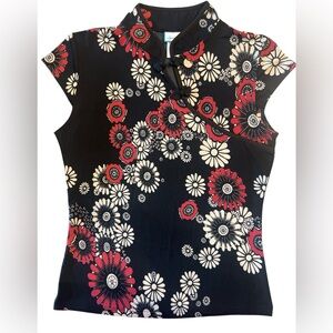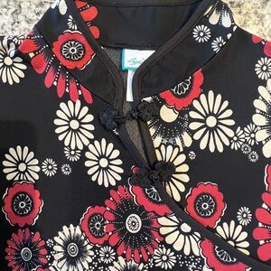 A’gaci Black and Red Asian Fashion Inspired Floral Top Size Large NEW