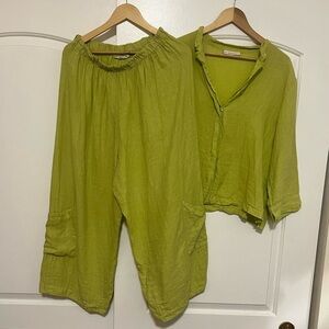 100% linen. Top size XL & bottom size L