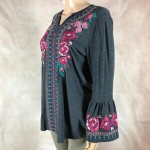 ANDREE by Unit Embroidered Boho Bell Sleeve Tunic MEDIUM