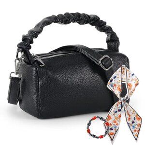 Black Crossbody Bags for Women with Scarf & Bracelet, Quilted Vegan Leather Purses for Women with Adjustable Shoulder Strap