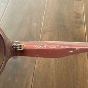 Coach Sunglasses. Dark tortoiseshell outer/pink interior. Great condition. Comes with case.