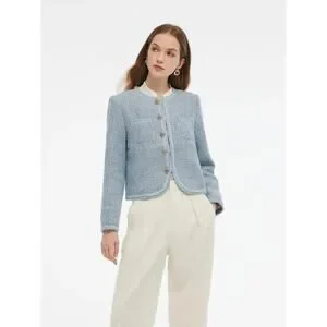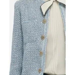 Goelia Tweed Round Neck Jacket Blue White Jacquard