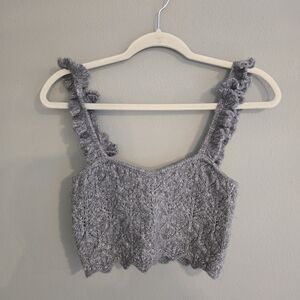 Stylish charcoal crop top with ruffled straps. Ideal for any occasion.