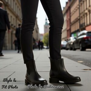 Step out in style and comfort, with these sleek black leather Chelsea boots, in a Moto, combat style ankle boot. Depending on your height, this will hit above the ankle.