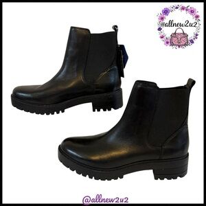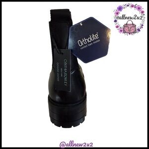 New Cynthia Rowley Black Leather Chelsea Ortholite Boots Rugged Grip Sole 7.5