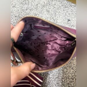 Inside: Front zip and back slip pockets