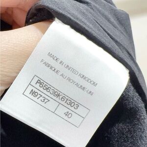 Chic Chanel sweater in black with a vibrant cross pattern. Features pink, green, and white accents. Ideal for a stylish wardrobe update.
