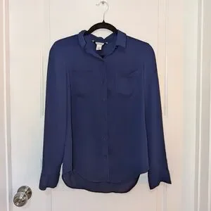 NWOT Women's Navy Blue Button-Up Blouse