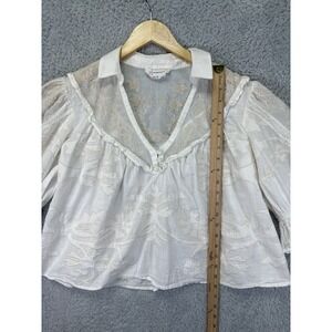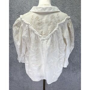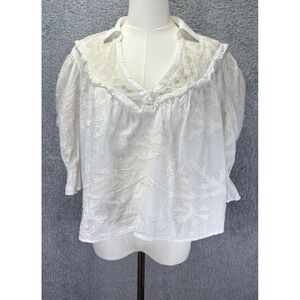 Anthropologie Heirloom Swing Embroidered Lace Blouse Ivory Boxy Oversized Medium