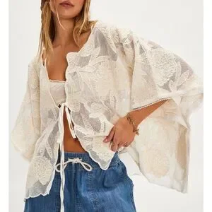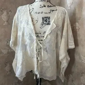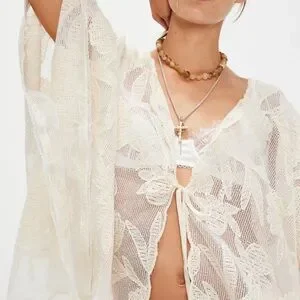 FREE PEOPLE WILLOW LACE TIE FRONT OPEN TOP OS