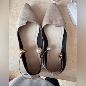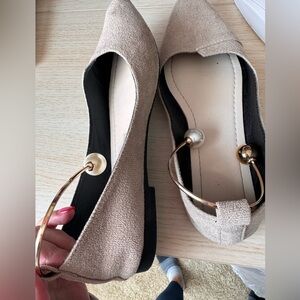 Step out in style with these elegant beige flats featuring chic gold accents. Perfect for any occasion. Shein. Size 41 fits like a 8.5-9