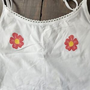 Cropped cami with adjustable straps and a fun graphic design. New with tags, never worn.