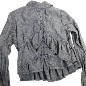 ruffled jacket, peplum jacket, Free People jacket, linen jacket, cotton jacket, buttoned jacket, belted jacket, gray jacket, casual jacket, lightweight jacket, XS jacket, women's jacket, vintage-inspired jacket