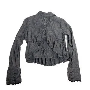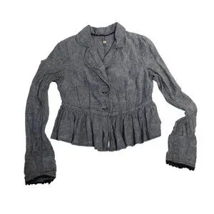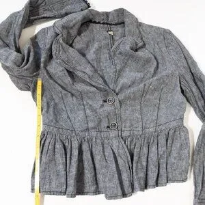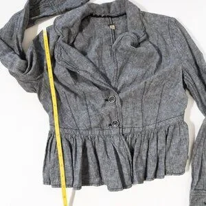 Free People XS Gray Ruffled Peplum Jacket Linen Blend