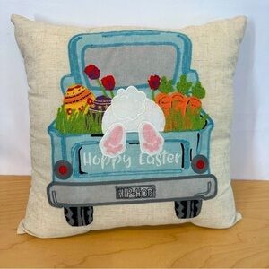 Adorable Embroidered Happy Easter 15”x15” Pillow
