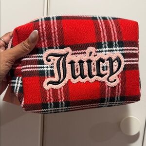 Bold red and black plaid pouch with Juicy logo. Perfect for essentials.