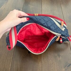 MZ Wallace X Splits59 Large Metro Sling Bag. Excellent condition. Large interior space. Navy blue with red and tan accents. Can be worn crossbody or as a belt bag. All serious offers considered. Only staying on this platform a short time.
