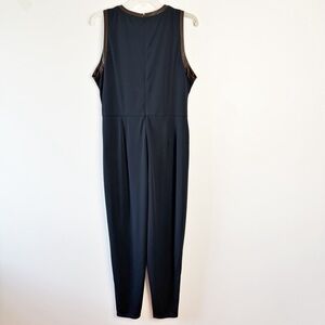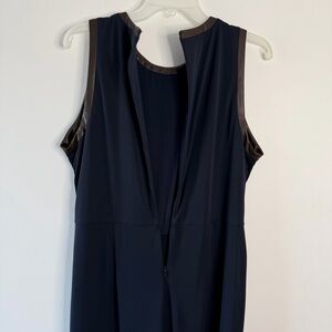 Lauren Ralph Lauren Navy Tie-Front Jersey Sleeveless Jumpsuit Brown Trim XL