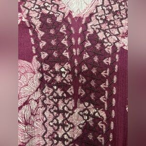The Nurture by Westbound Woman's Purple Floral V-Neck Shift Tiered Midi Dress in size 1X is a stylish and versatile piece perfect for various occasions. Made from comfortable rayon fabric, this dress features a beautiful floral pattern with accents of fringe and embroidered details. The V-neck and 3/4 sleeves add a touch of elegance, while the pullover closure makes it easy to wear. With its bohemian and beachy theme, this dress is great for travel, parties, or casual outings, making it a must-have addition to any woman's wardrobe.