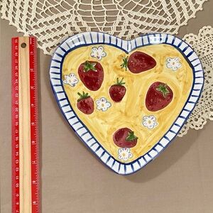 Handmade Hungarian Heart Shape Plate With Stripes And Strawberries Signed