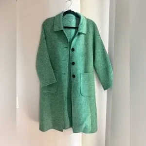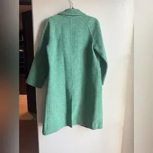 Vintage Wool Blend Green Houndstooth Coat Longline Oversized Minimalist Chic Si