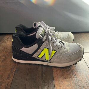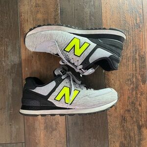 574 New Balance Women's Sneakers in Heather Gray and Neon Yellow