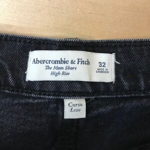 Abercrombie Fitch The Mom Short High Rise Black Denim Distressed Cutoff Size 32
