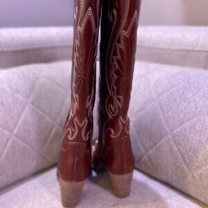 Gently Used cowboy boots. 3 1/4 heel 14 1/4 shaft and 14 3/4 calf circumference.