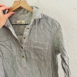 Marine Layer Grey Stripe Half Button Top